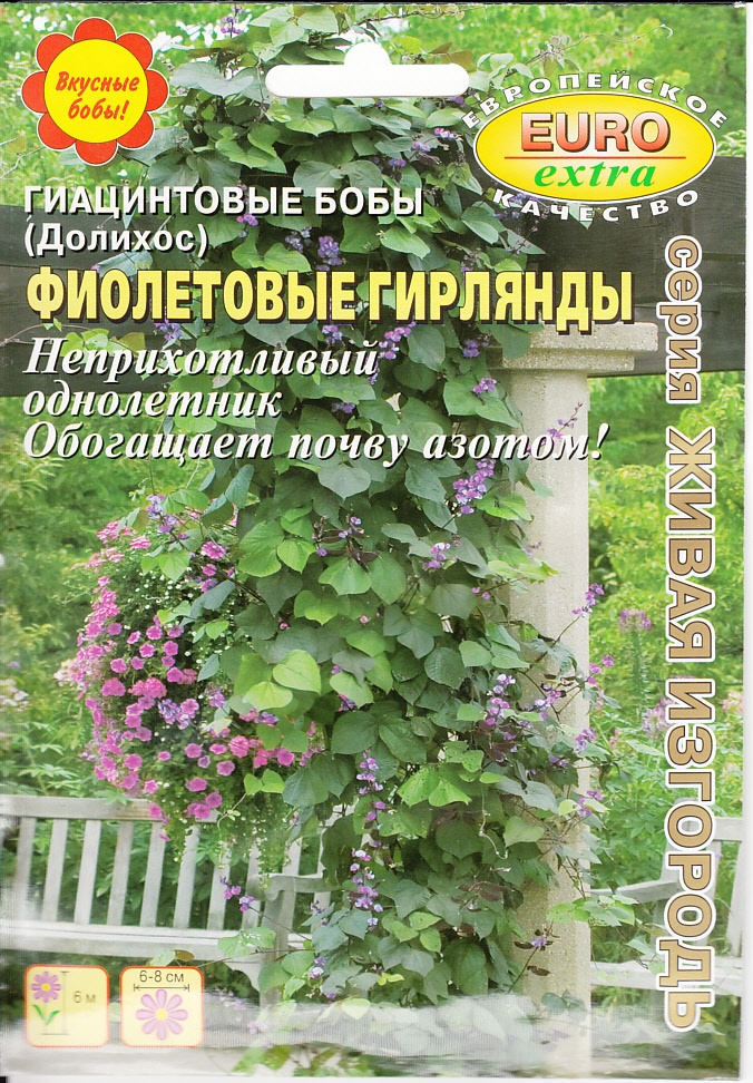 Цветет с начала июля и до заморозков. Цветки двуцветные мотыльковые, напоминающие цветки фасоли, собраны в кисти длиной 30-40 см. В соцветии до 40 цветков. Окраска цветков ярко-фиолетовая. Аромат тонкий и нежный. Продолжительность цветения одного цветка - 3 дня, а всей кисти - 18-20 дней. Цветы долихоса пригодны на срез, очень долго сохраняются в воде.
