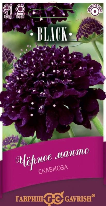 Крупноцветковая скабиоза - неприхотливое однолетнее растение из семейства Ворсянковых. Стебель прямой, разветвляющийся, высотой до 90 см. Прикорневые листья ланцетно-овальные, крупнозубчатые, стеблевые – супротивные, перисто-раздельные. Мелкие цветки собраны в головчатые соцветия диаметром 5-6 см. Соцветия темно- фиолетовые, махровые, на длинных прочных цветоносах, что особенно ценно для цветочных аранжировок. Предпочитает солнечнее места с плодородной рыхлой почвой. Размножают семенами: посев на рассаду — в феврале-марте; в открытый грунт — в апреле-мае, выдерживая расстояние между растениями 35-40 см. Идеально подходит для клумб, рабаток. В срезке стоит очень долго. Отлично переносит пересадку даже в цветущем состоянии.