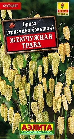 Изящный и неприхотливый однолетний злак. Известен также как «слёзы Богородицы», «кукушкины слёзки». Растение кустистое, высотой 40-50 см. Куст многостебельный. Миниатюрные поникающие колоски в виде сердечка собраны в раскидистые метелки. Растение используется для оформления альпинария, миксбордера, цветников пейзажного стиля, мавританского газона. Бриза ценится у флористов за способность оригинально украсить летний букет и за свойства сухоцвета. Засушенные метелки, окрашенные серебряным аэрозолем, неотразимы в зимних аранжировках.