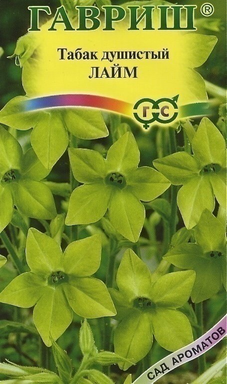 Яркая интересная серия табака душистого с насыщенной окраской крупных душистых цветков, собранных в рыхлое метельчатое соцветие. Растение высотой 60 см, усыпано длинными бутонами, направленных вверх. Цветет массово в течение всего сезона. Желтовато-зеленые цветки не закрываются днем, а ночью особенно сильно ощущается их нежных аромат. Предпочитает открытые солнечные места с умеренно плодородными и влажными почвами. При посеве на рассаду семена не присыпают почвой. Всходы появляются через 10-12 дней. Первую пикировку проводят в ящики, вторую — в горшки по 4 штуки. Табак — растение холодостойкое, но в открытый грунт его высаживают только после окончания весенних заморозков. Используют в групповых посадках, миксбордерах, идеально подходит для бордюров, озеленения балконов, лоджий. В срезке долго сохраняет свежесть.