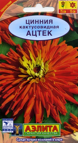 Великолепный сорт с гигантскими цветками диаметром 14-15 см. Соцветия густомахровые, кактусовидные, очень яркие и необычные. Кусты крепкие, ветвистые, с многочисленными цветоносами высотой до 90 см. Сорт неприхотливый, зацветает рано и обильно. Используется для оформления клумб, рабаток, высоких бордюров. Отлично подходит для срезки.