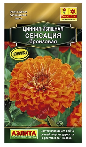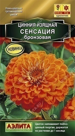 Циннии СЕНСАЦИЯ итальянской компании Farao – результат успешной селекции на очень крупный, густомахровый цветок (Ø10-13 см). Едва ли вы найдете такое же крупное соцветие у других сортов и гибридов. Напоминающий полноценный георгин, эффектный цветок держится на растении более месяца. Крепкие, раскидистые кусты 35-40 см высотой красиво смотрятся в среднем ярусе миксбордера. Букеты из цинний СЕНСАЦИЯ долго стоят в воде.
