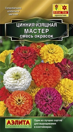 Крепкие приземистые кусты 25-30 см высотой поражают суперобильным, длительным цветением; каждое соцветие диаметром 8-10 см держится на растении более месяца. Если не знать точно, что перед вами – сорт, то циннии группы МАСТЕР легко принять за гибрид в первом поколении. Одна из лучших цинний для горшечного выращивания. В цветниках подходит для бордюров и посадок сплошными массивами.