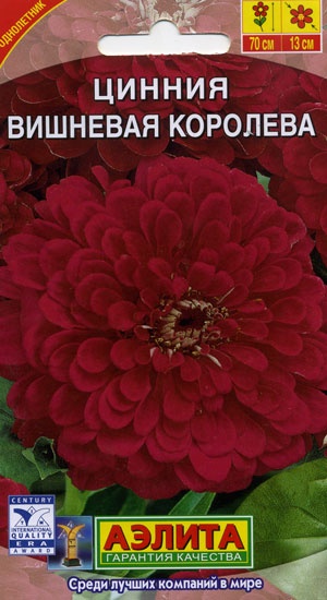 Высокорослый, обильноцветущий сорт циннии с очень крупными (диаметром 12-14 см), махровыми соцветиями. Кусты прямостоячие, крепкие, высотой до 90 см. Цветение раннее и продолжительное. Рекомендуется для выращивания на клумбах, рабатках, в групповых и одиночных посадках. Подходит для срезки.