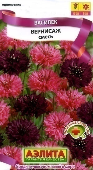 Необыкновенная смесь быстрорастущего, неприхотливого однолетника. Куст изящный, прямостоячий, высотой до 80 см. Соцветия-корзинки диаметром 5-6 см в изобилии украшают растения до самых заморозков. Растения используют для оформления цветников и мавританского газона. Срезка сохраняет свежесть в вазе до 7 дней. Василек – отличный медонос, обладает комплексом лекарственных свойств.