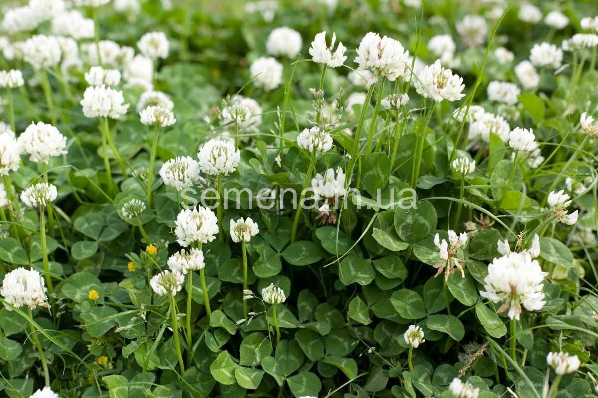 Низкорослое растение (15-50 см) с длинным ползучим ветвящимся стеблем и белыми соцветиями. За газоном из клевера легко ухаживать, его можно косить очень редко, это не ведет к потере его опрятного внешнего вида. Используется для создания великолепных зеленых лужаек, детских площадок и задернения в садах и парках.