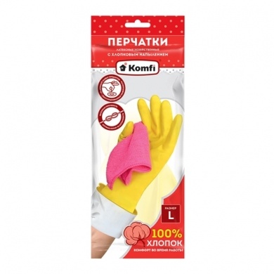 Перчатки латексные «Komfi» с внутренним хлопковым напылением обеспечивают максимальный комфорт во время работы. Перчатки идеально подходят для хозяйственных бытовых работ и работ на производстве.