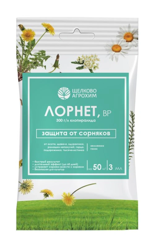 Средство от сорняков «Лорнет, ВР» обеспечивает защиту от широкого спектра сорных растений на посадках земляники, а также на газонах. Гербицид не оказывает вредного влияния на газон и землянику, полностью уничтожая сорняки и их корневую систему. «Лорнет, ВР» обладает системным действием, легко проникает в сорное растение через листья, быстро распространяется по нему, блокируя точки роста. Подавляет рост сорняков в течение нескольких часов после проведения обработки. Уничтожает как наземную, так и корневую систему сорняков.