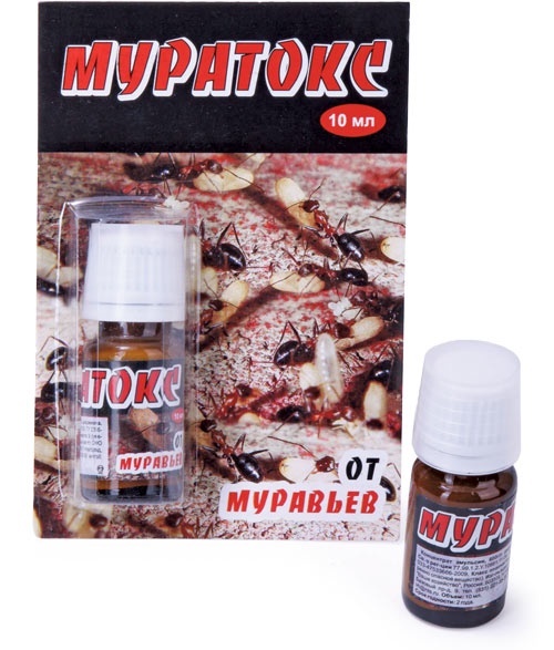 МУРАТОКС» — инсектицид широкого спектра действия, для борьбы с муравьями, блохами, личинками подвальных комаров (концентрат эмульсии, 600 г/л диазинона).