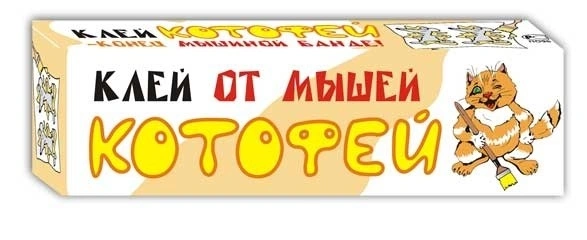 Клей «Котофей» предназначен для отлова мышей и мелких крыс, обладает замечательными клеящими свойствами, надежно фиксирует «влипших» грызунов. Не содержит токсичных веществ, не пахнет, не отпугивает грызунов запахом. Легко наносится на подложки, имеет оптимальную консистенцию, не растекается. В «намазанном» виде очень, очень долгое время не высыхает, не покрывается коркой и не теряет своих свойств. Прекрасно ловит мышей как в сухих, так и во влажных помещениях, а также вне помещений. (Клеящие свойства немного снижаются лишь на морозе).