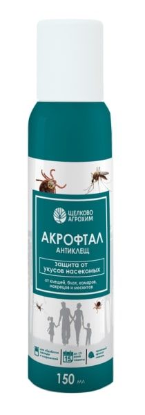 Средство «Акрофтал Антиклещ» – универсальная защита от укусов насекомых и клещей. Это комбинированный препарат, содержащий 2 активных вещества, которые отпугивают и убивают насекомых. «Акрофтал Антиклещ» используется для обработки одежды и снаряжения против клещей, блох и летающих кровососущих насекомых. Самое длительное репеллентное действие – до 15 дней (на одежде).